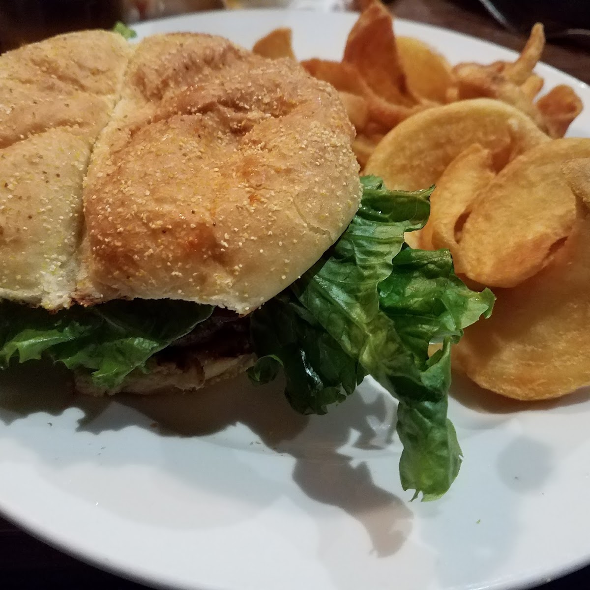 I had the cave burger with a side salad, both were delicious. Our waitress was really nice, and the food came quickly. The restaurant and bathroom were really clean. My husband had the aurora burger and really enjoyed it.