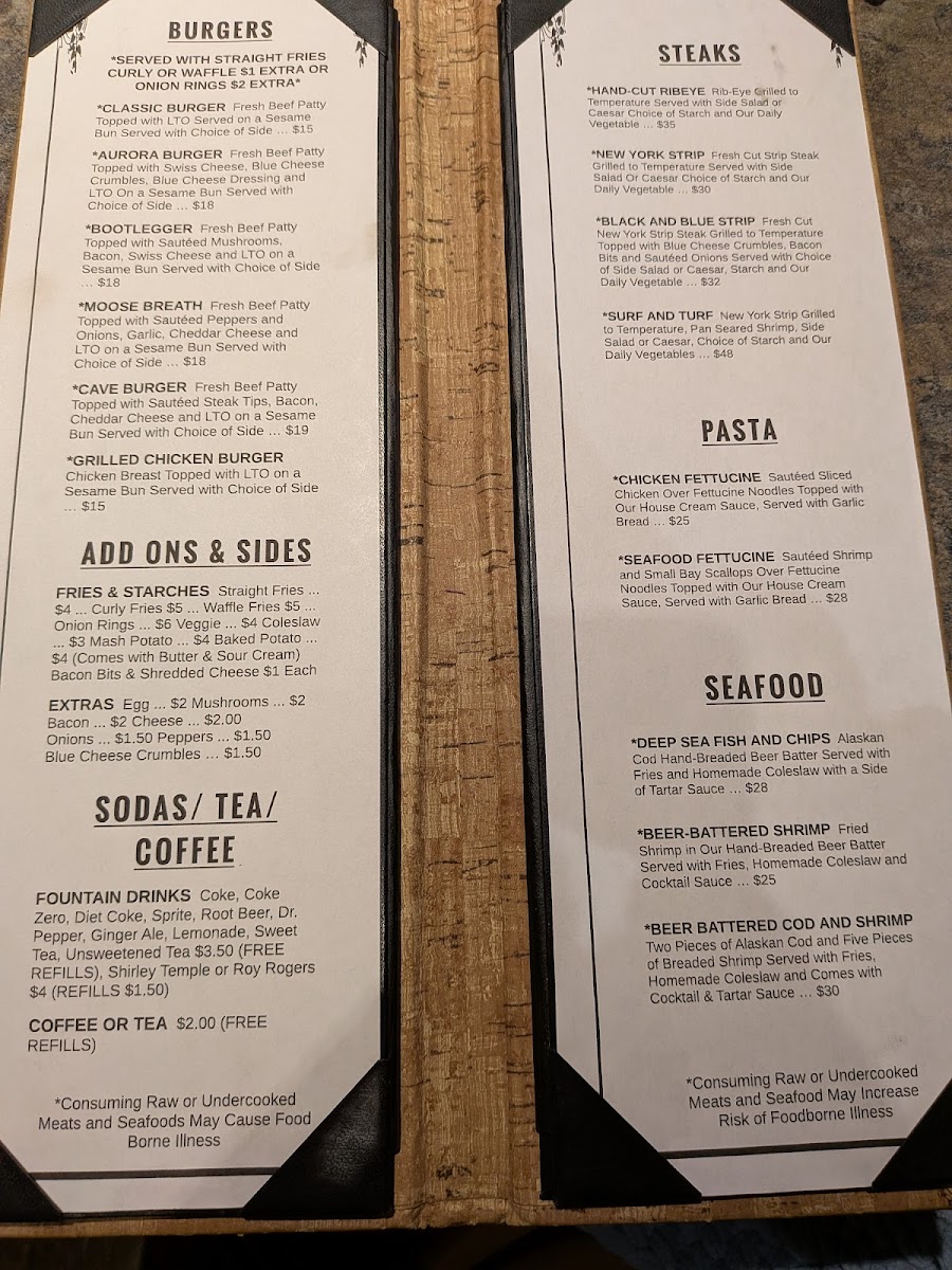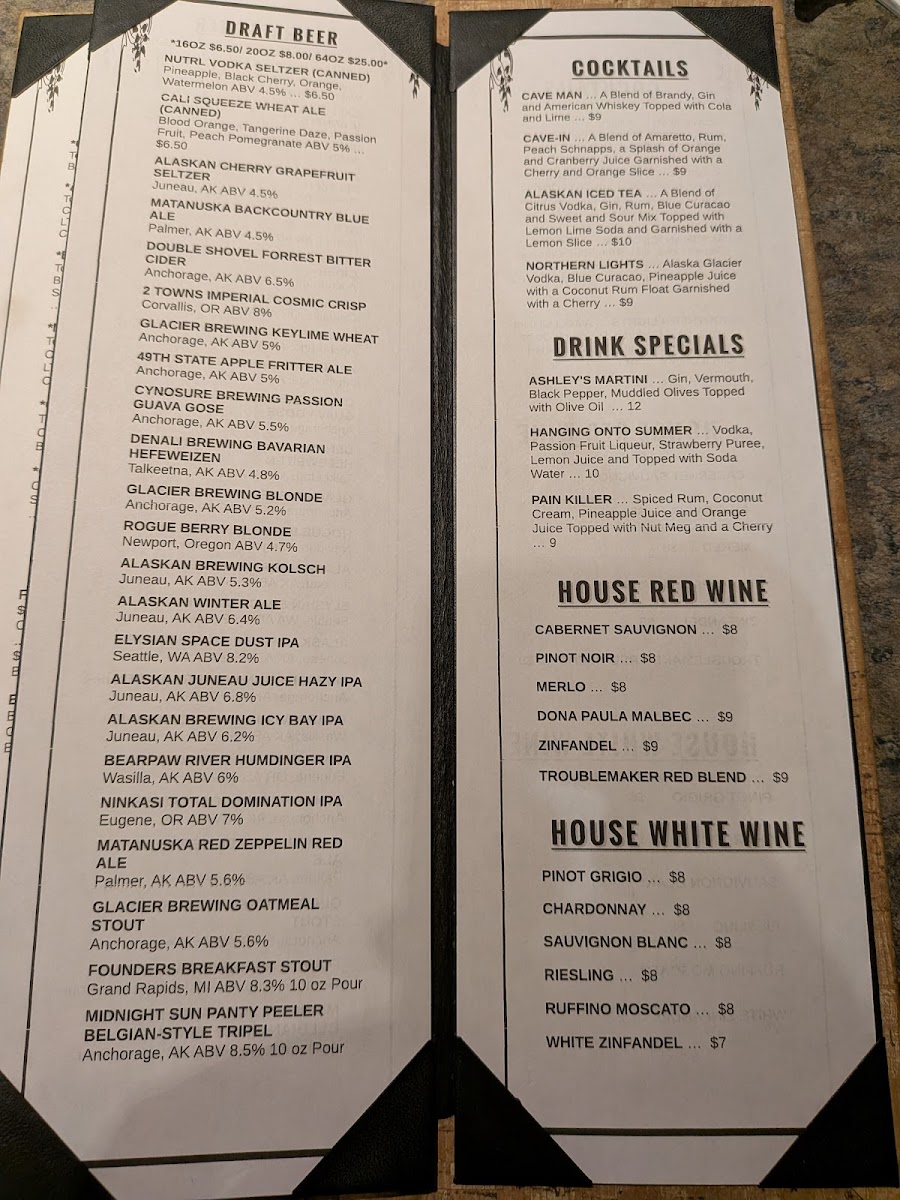 Seafood selections such as crab-stuffed halibut and butter and herb halibut bring a local touch, fitting naturally with the Alaskan surroundings. For those seeking something rich and satisfying, options like a half rack of baby back ribs or beef gorgonzola create a cozy, filling experience.