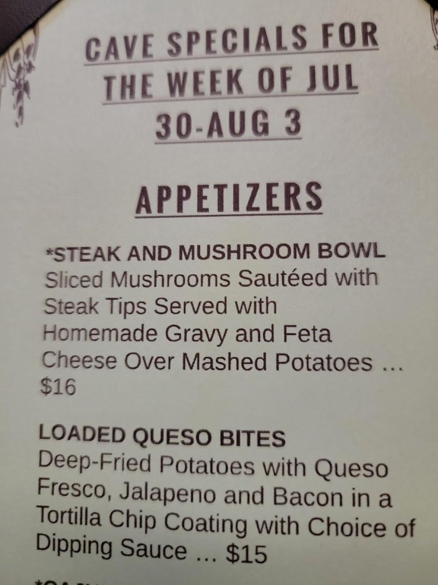 Whether you’re stopping by for a quick bite or settling in for a relaxed dinner, the menu at The Cave balances simplicity and hearty flavors, offering choices that feel both familiar and attuned to the local vibe.